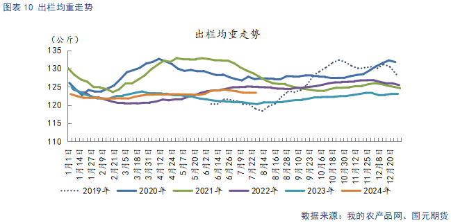 截止7月26日,生猪7月出栏均重123.46公斤,与上月环比下降0.6公斤。大猪供应偏紧,标肥价差倒挂,养殖端存压栏、二育情绪,前期压栏、二育的大体重猪出栏积极性也较强,出栏均重预期将窄幅上调。